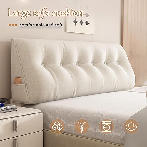 GYCF Coussin de Lecture Compensé, Triangulaire Coussin à Coins,Gros Coussin Canapé Dossier,Traversin Tête de lit Support Arrière Oreiller De Tête De Lit en Coin,Blanc,80 * 50 * 20CM