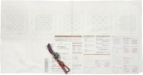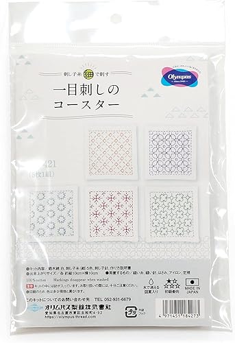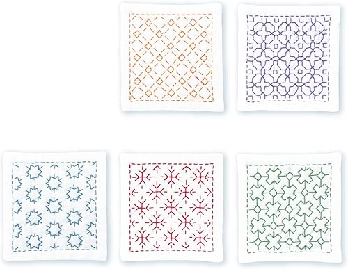 olympus Thread Hitomezashi Sashiko Lot de 5 dessous de verre blancs imprimés avec fin fil Sashiko