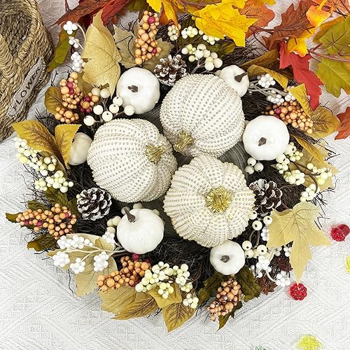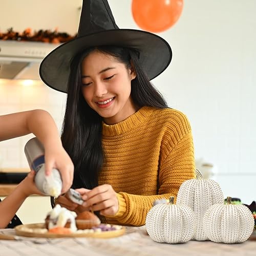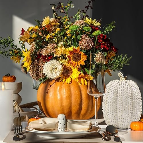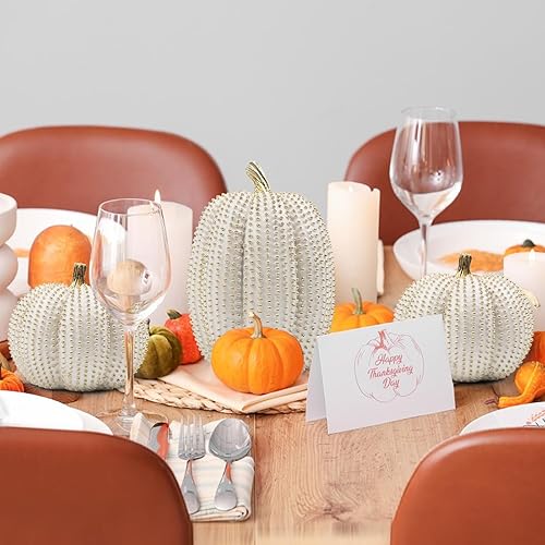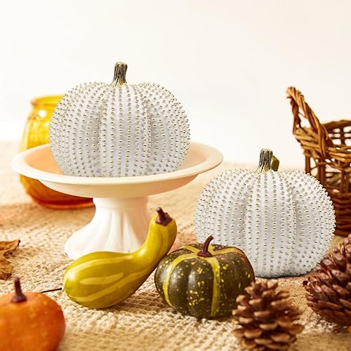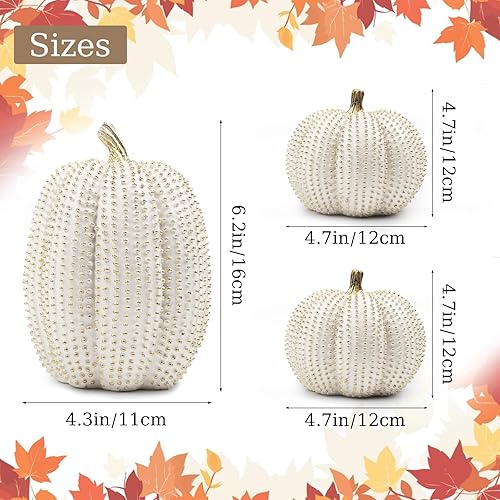 Songjum 3Pièces Statue de Citrouille en Résine Décoration de Citrouille Citrouille Scintillante Blanche et Dorée Pièce Centrale de Table pour la Décoration de Cuisine de Cadeau d'automne de Ferme