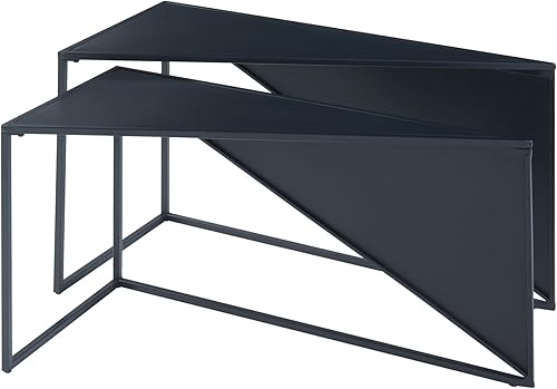 [en.casa] Set de 2 Tables Basses Gigognes Ensemble de 2 Tables d'Appoint Idéales comme Tables d'Angles Lot de 2 Bouts de Canapé de Tailles Différentes Métal Noir