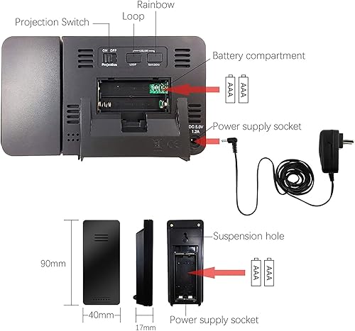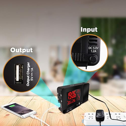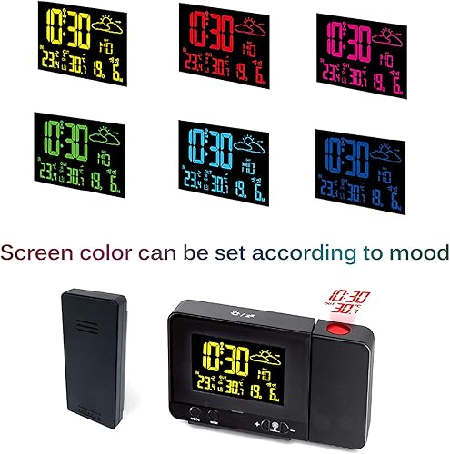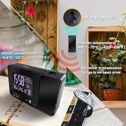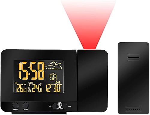 Houkiper Reveil Projecteur Plafond, Reveil Projection Plafond Température Intérieure et Extérieure, Prévisions Météorologiques, Réveil Numérique avec Câble d'alimentation, Capteur Extérieur