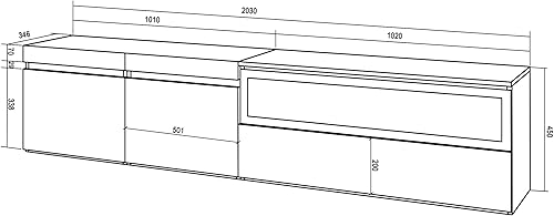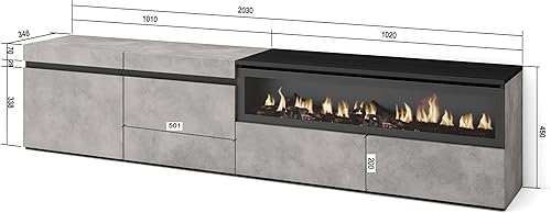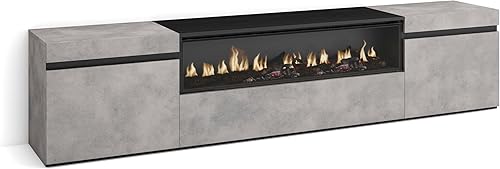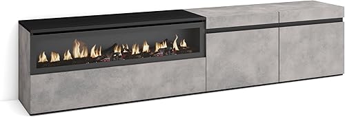 Skraut Home | Meuble TV | Banc Télé | Grand Espace de Rangement | 200x45x35cm | pour Les TV jusqu'à 80' | Cheminée électrique | Style Moderne | Ciment
