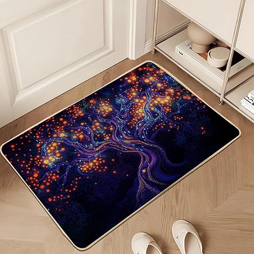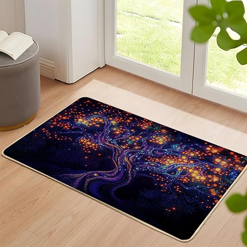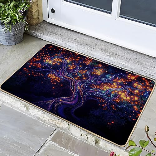 Paillasson arbre coloré, avec lumières LED vives pour entrée intérieure et extérieure, décoration de vacances, imperméable, antidérapant, absorbant la poussière, facile d'entretien, 73,6 x 43,2 cm