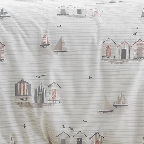 Fusion - Housse de Couette Naturelle Nautique - 140 x 200 cm - 1 taie d'oreiller - Réversible (2 Motifs) - Housse de Couette Bord de mer/voiliers - Housse de Couette Plage côtière - Literie Naturelle