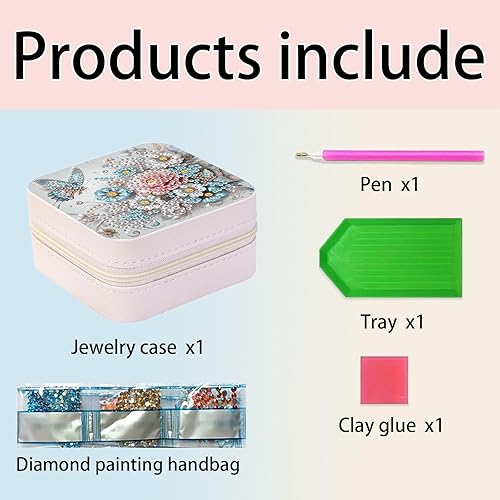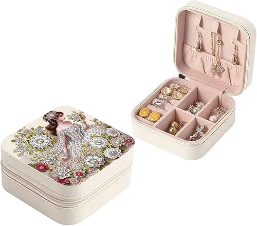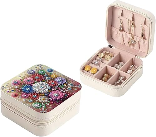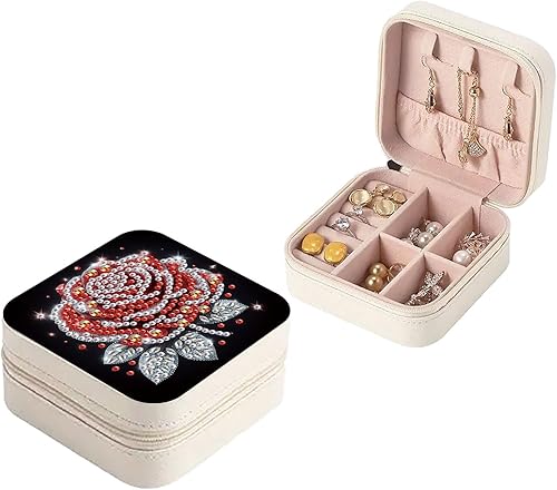 CXINLky Diamond Art Painting Boîte à bijoux en cuir synthétique 2 couches Diamond Art Organiseur de bijoux avec serrure Boîte à bijoux avec doublure douce pour bagues, boucles d'oreilles, colliers