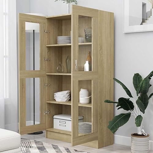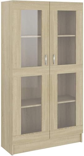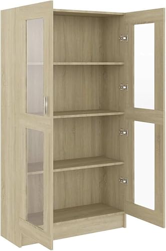 vidaXL Armoire à Vitrine, Meuble de Rangement avec Compartiment, Étagère de Salon Salle de Séjour Chambre Intérieur, Chêne Sonoma Bois d’Ingénierie