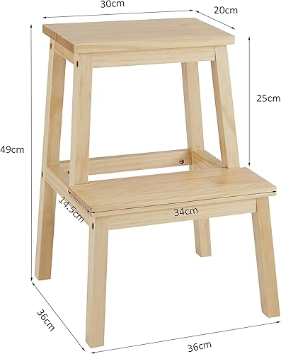 ACAZA Escabeau à 2 Marches, Marchepied en Bois, Tabouret pour Adultes et Enfants, Beige