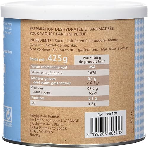Lagrange Aromatisation Pêche pour Yaourts 425 g - Lot de 4