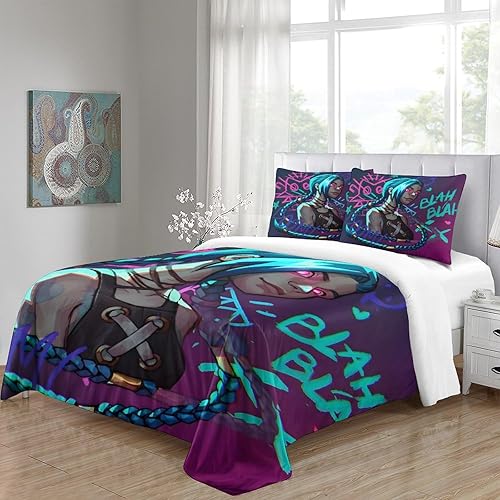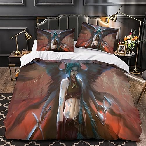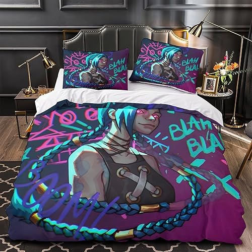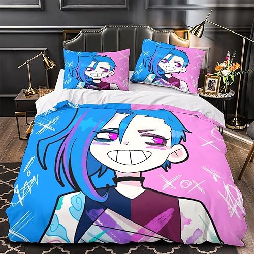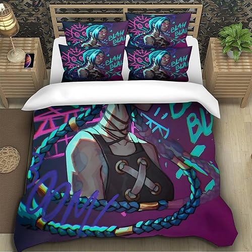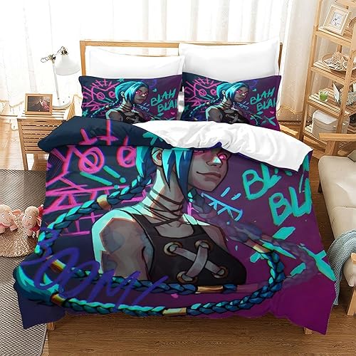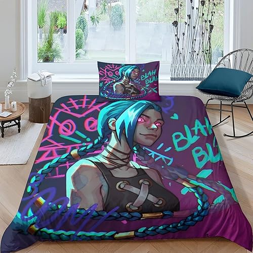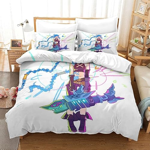 LIAOHENKAN Arcane pour Adultes Et Enfants 3D Imprimé Jinx Character Housse De Couette Housses De Couettes Parure De Lit E avec Fermeture À Glissière avec Taies Microfibr 3 Pièces Single(140x200cm)