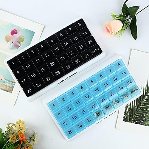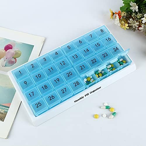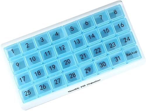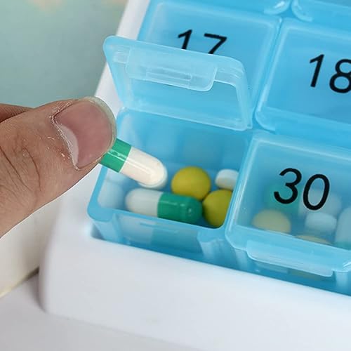 Organiseur mensuel pour pilules 31 compartiments, 1 par jour, 4 semaines complet organisateur de pilules 31 jours, bleu