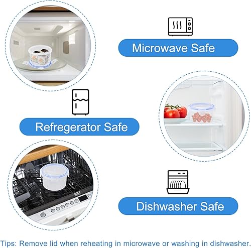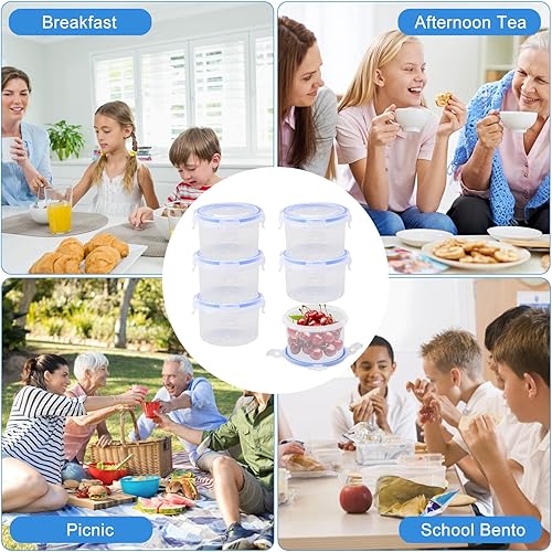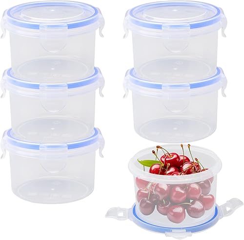 Lot de 6 boîtes de conservation rondes de 300 ml avec couvercle hermétique en plastique - Petites boîtes de conservation en plastique - Boîtes de rangement pour la cuisine