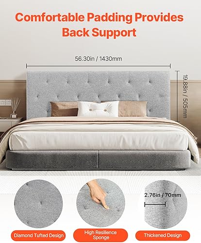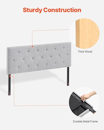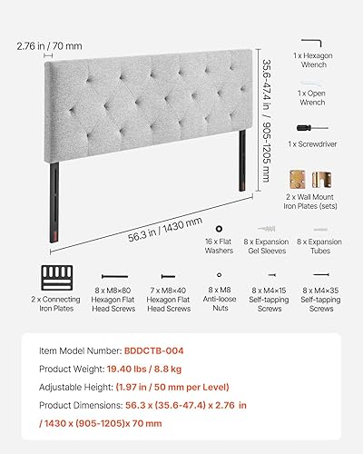 VEVOR Tête de lit pour lit Double, tête de lit sur Pied réglable en Hauteur, capitonnée Confortable en Losanges, 1430 x (905-1205) x 70 mm, pour Chambre, hôtel, Famille d'accueil, dortoir, Gris Clair