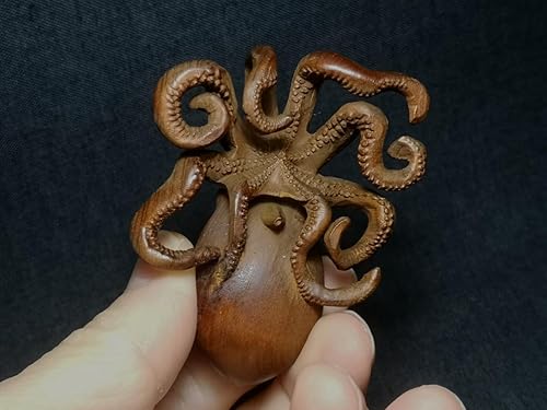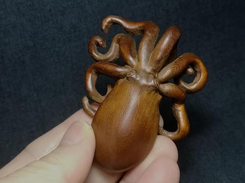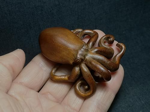 HXSCOO Buis Japonais sculpté à la Main Poulpe Poisson Figure Statue netsuke à Collectionner décoration Cadeau