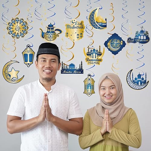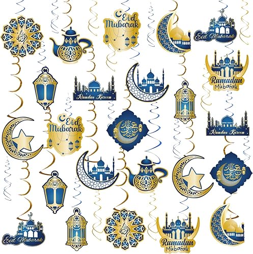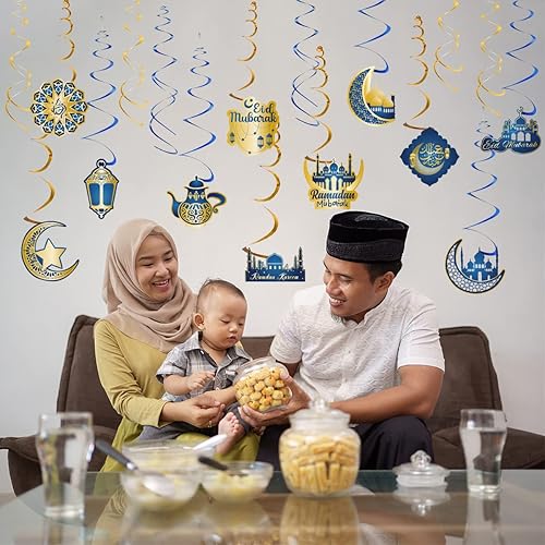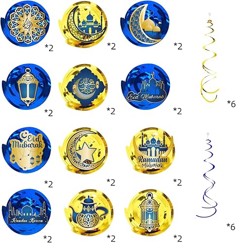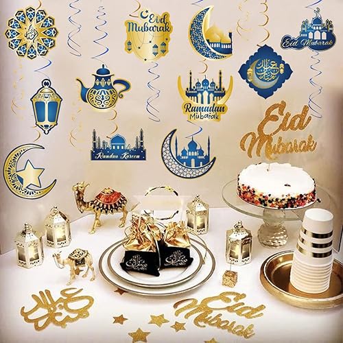 Lot de 36 décorations à suspendre pour la maison - Aïd Mubarak - Décoration de porte de fête - Eid/Ramadan Mubarak Ramadan Kareem décoration de fête - Bleu & Or
