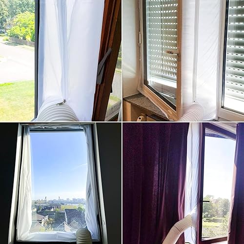 FINEVERNEK 400CM Tissu De Calfeutrage pour Fenêtres pour Climatiseur Mobile et Sèche-Linge,Kit Fenêtre Climatiseur Mobile,Joint de Fenêtre,Fonctionne avec Toutes Les Unités de Climatisation Mobiles