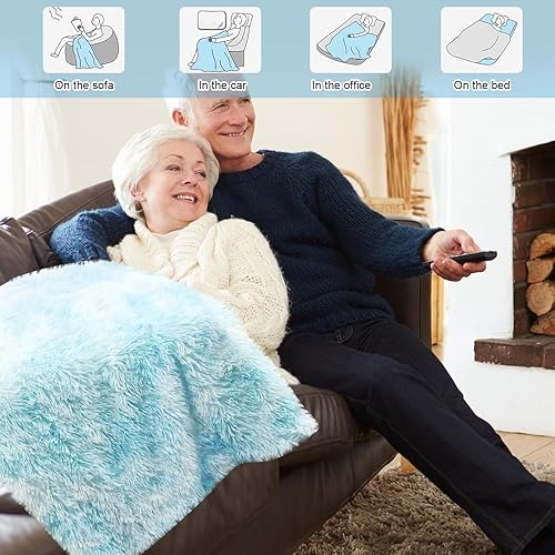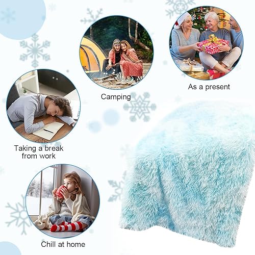 XRPRPX Plaid Couverture Polaire Super Doux 130 x 160 cm, Bleu Blanc, Super Chaude Jeté de Canapé Douce pour Cadeau Anniversaire Hiver Noël