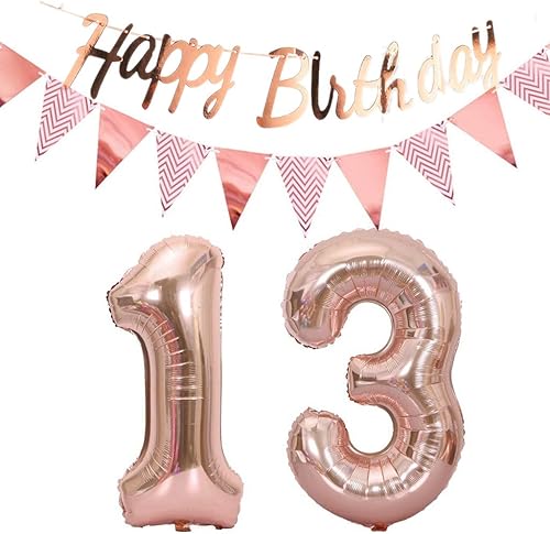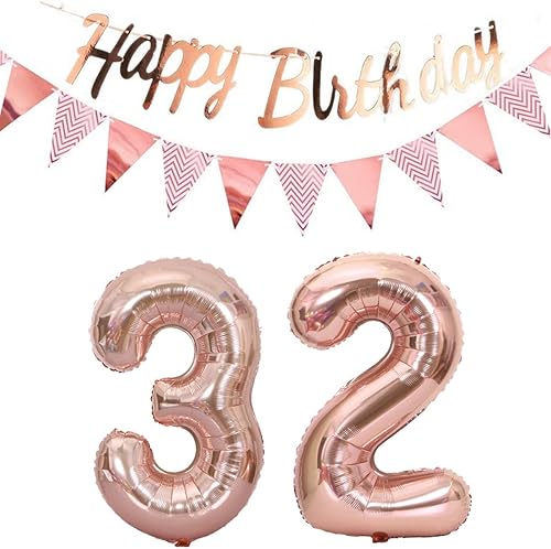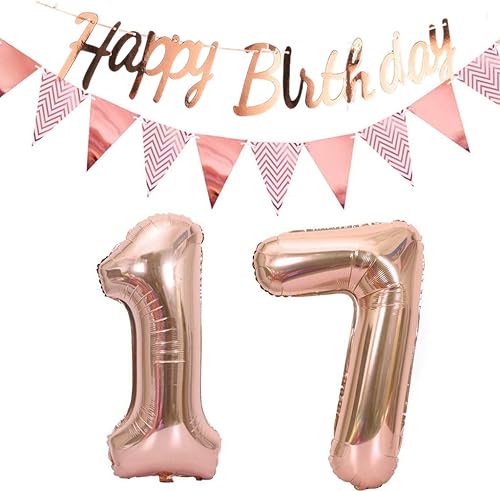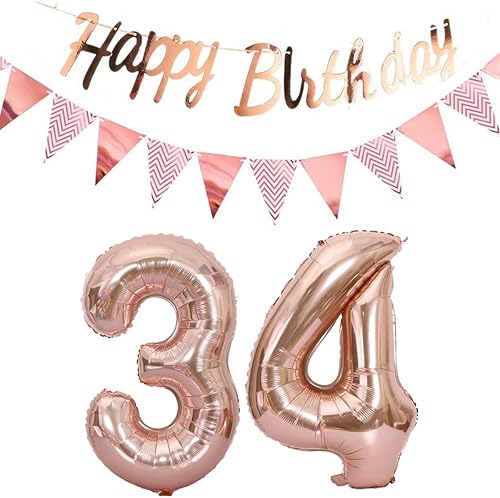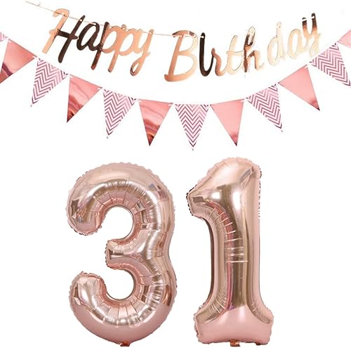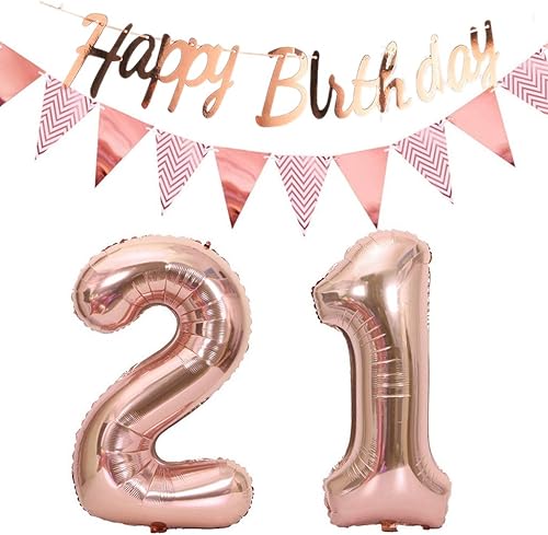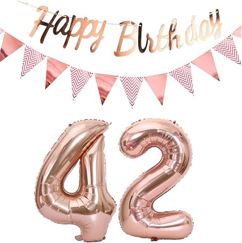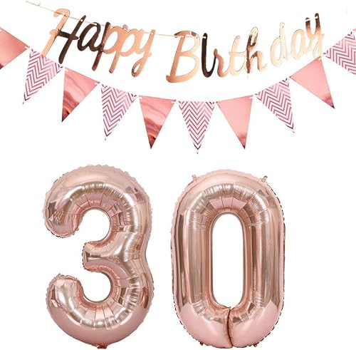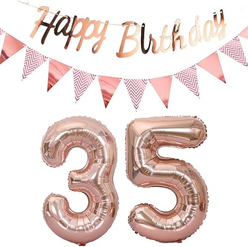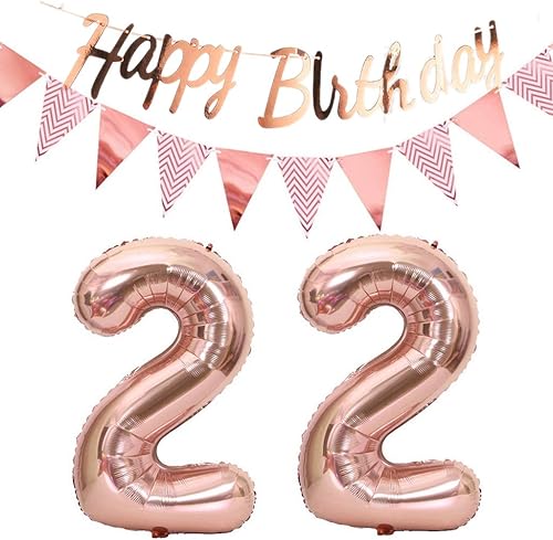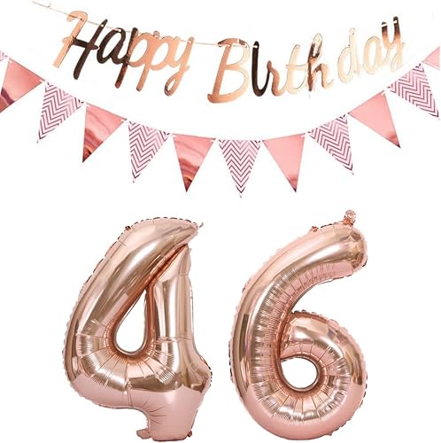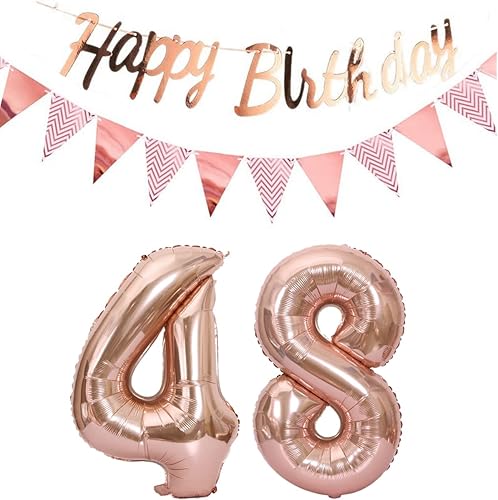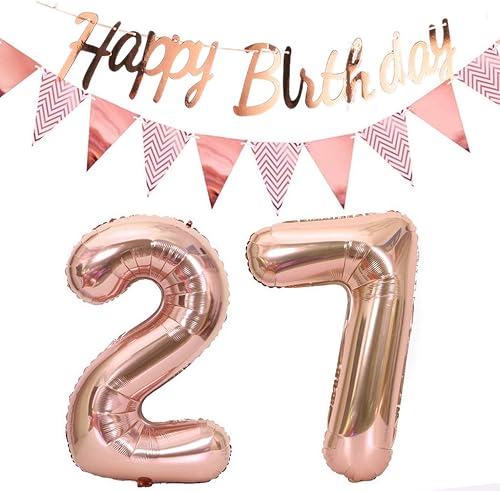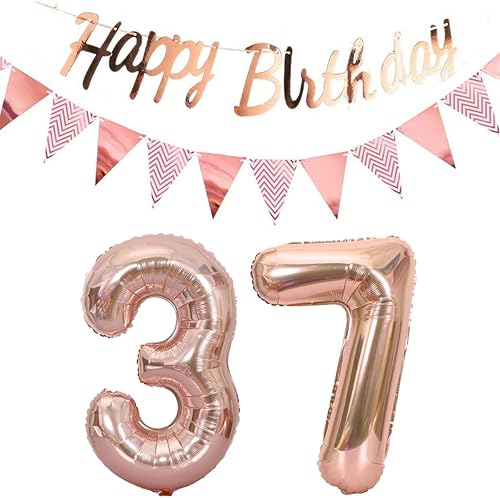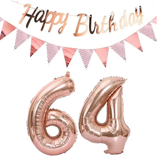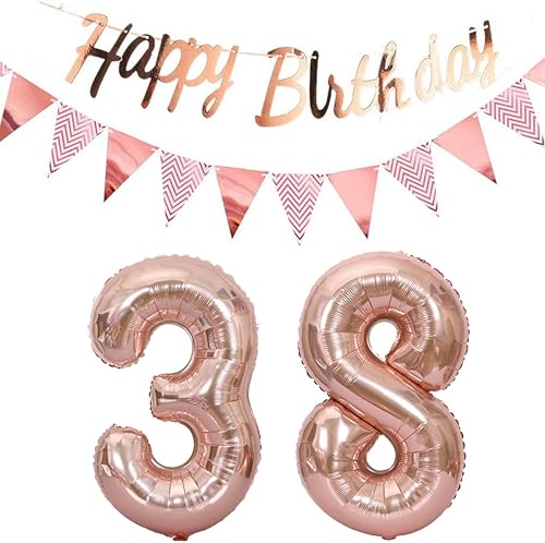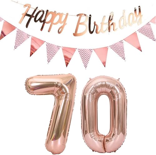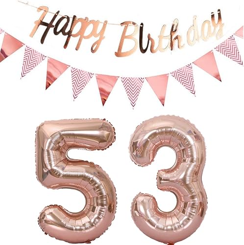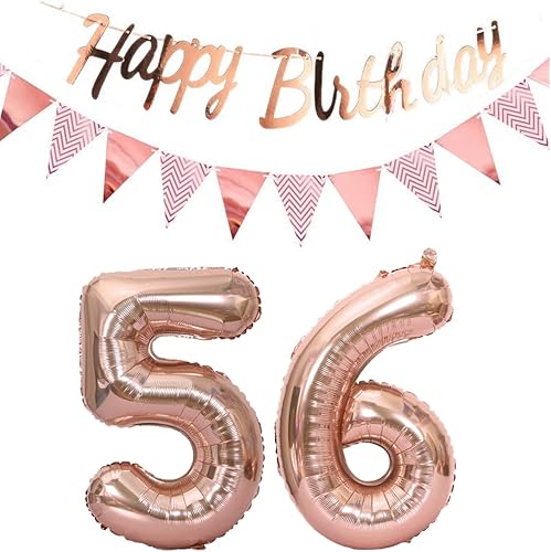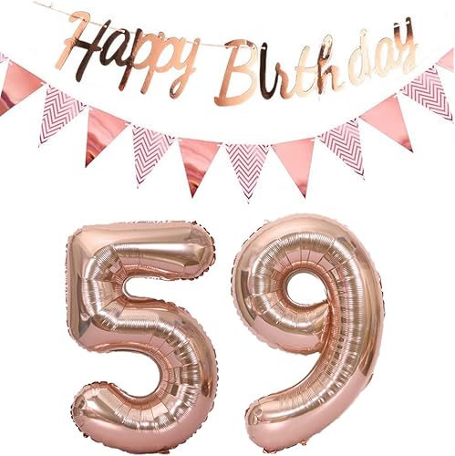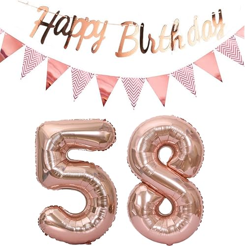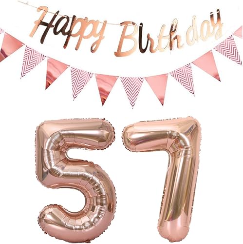 ballons 57e anniversaire deco femme or rose+guirlande joyeux anniversaire +chaîne de fanions 40 'chiffres ballon 57 ballons 57 ans deco anniversaire femme 57 anniversaire deco or rose(57)