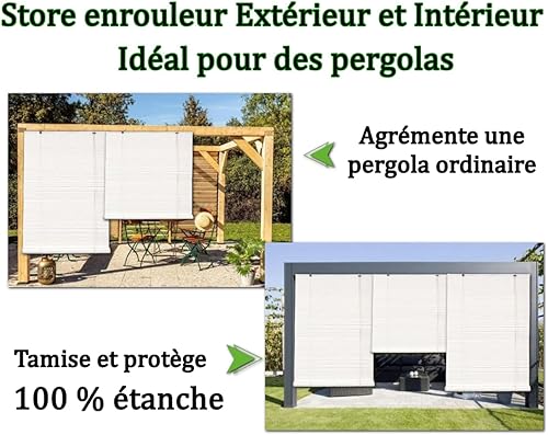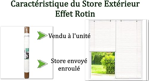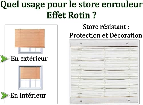 MadeInNature Store Enrouleur pour Extérieur et Intérieur Effet Rotin, Fenêtre Porte Fenêtre Baie Vitrée Pergola, Coloris Naturel ou Blanc Hauteur réglable Tailles Variées (Naturel, Largeur 90x180cm)