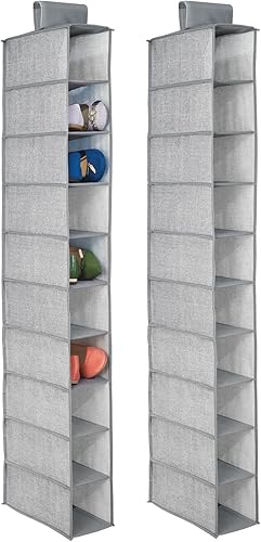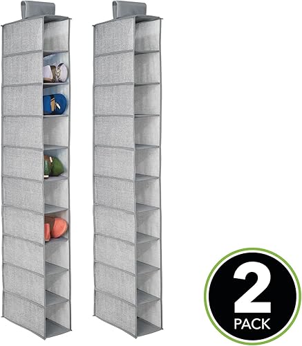 mDesign Étagère suspendue pour porte-monnaie, sac à main, chaussures, etc. – lot de 2 avec 10 poches – sac de rangement suspendu idéal en tissu – le parfait rangement suspendu – couleur : gris