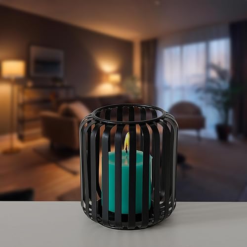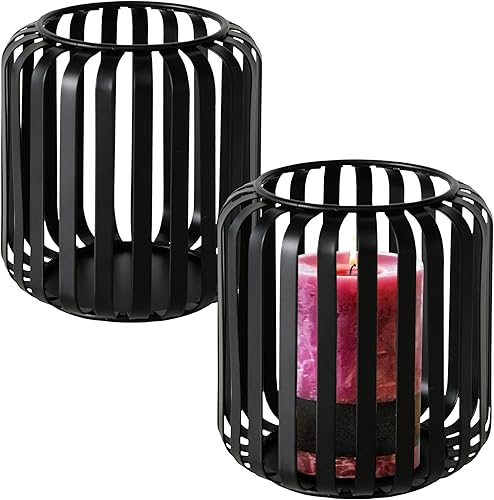 Lot de 2 photophores ronds en métal noir 12 x 10 cm - Élégant bougeoir rond - Décoration de table - Lanterne d'intérieur - Bougeoir pour bougie pilier