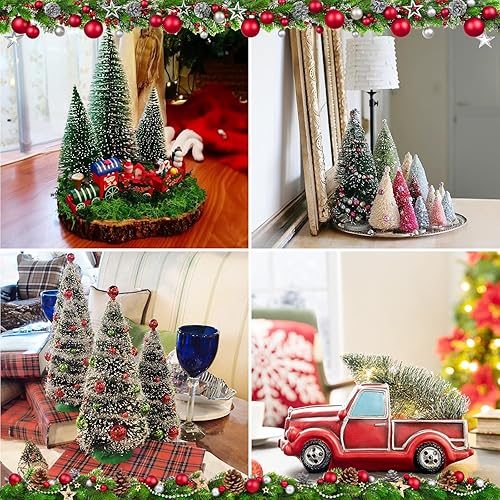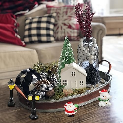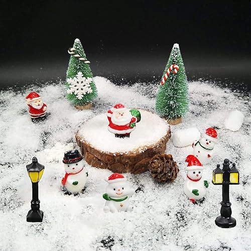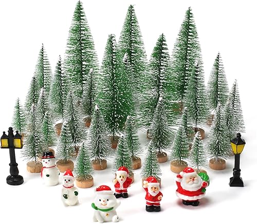 KINDPMA 38 Pièces Sapin de Noël Miniature Village Ornement Artificiel Mini Arbre de Noël Miniature Decoration Le père Noël Bonhomme de Neige de Noël réverbère pour Décoration Table Noël