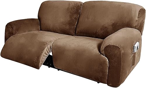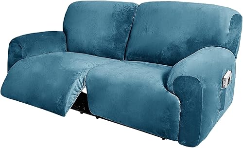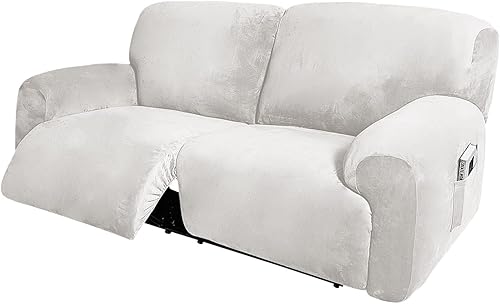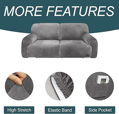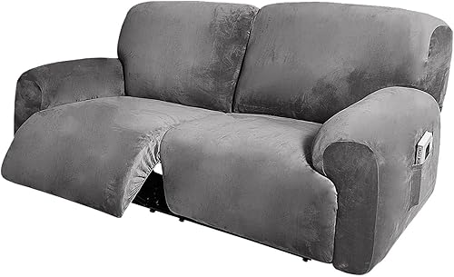 WWQQKJ Extra Large Velours Housse de Fauteuil Relax Extensible, 6 pièces Housse Fauteuil Relax 2 Places Doux Fauteuil Relax Housse pour Salon Animaux de Compagnie(Gris)