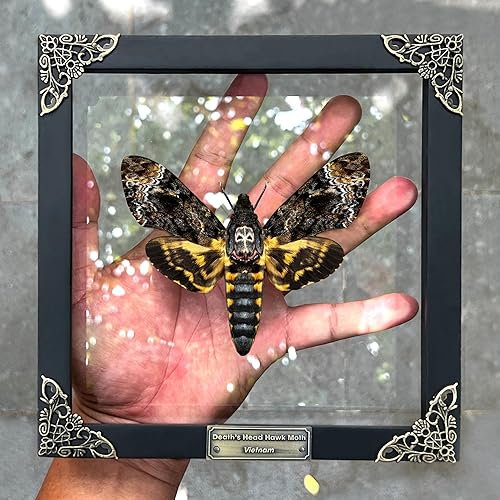Véritable tête de mort Acherontia, cadre blanc, tête de mort, papillon, boîte à ombres faite à la main, insectes, curiosités, taxidermie unique, objets de collection, décoration murale de table,