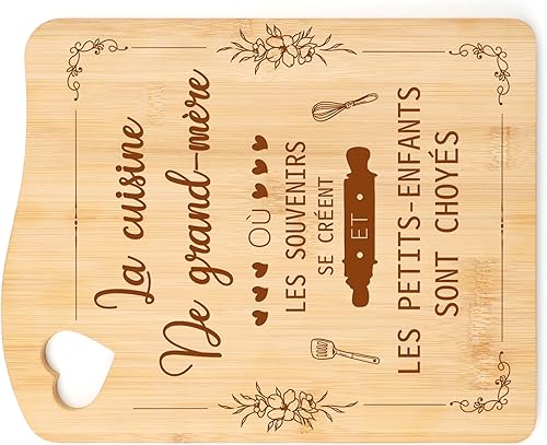 Cadeau Mamie Anniversaire, Planche à Découper Unique en Bambou Gravée à la Main, Cadeau Fete des Grand Mere, Cadeau Anniversaire Mamie, Cadeau pour Mamie Original, Idée Cadeau Mamie Noel