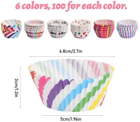 Natuce Caissettes à Cupcakes et Muffins, 600 Pièces Caissettes de Décoration pour Cupcakes, avec Six Patrons Colorés, Caissettes de Cuisson, pour Mariage, Dessert, Anniversaire