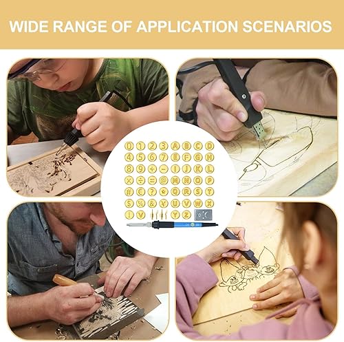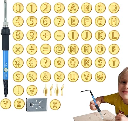 Lettres à bois, kit de combustion à bois avec tampons de lettres - Ensemble de sculpture sur bois Kit de gravure alphabet | Outil de marquage à chaud, symboles et chiffres, outils artisanaux pour la c