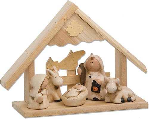 My Home Crèche en bois avec figurines