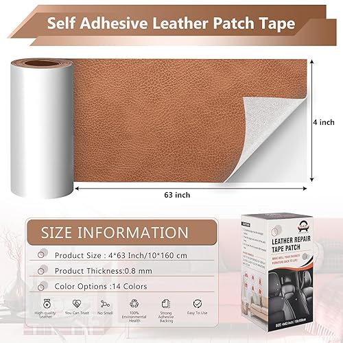 OAZ Patch de Réparation en Cuir,10 x 160 cm Simili Cuir Autocollant Patch en Cuir Auto-adhésif,pour Réparation et Rénovation de Canapé, Veste en Cuir,Sacs à Main, Marron rétro