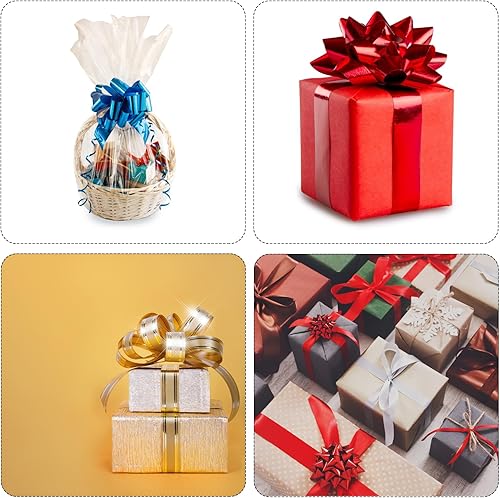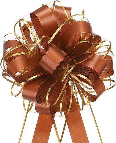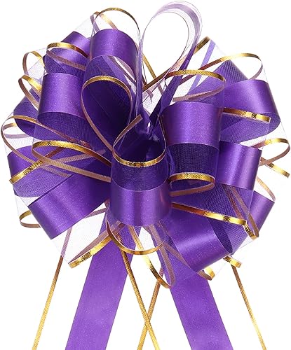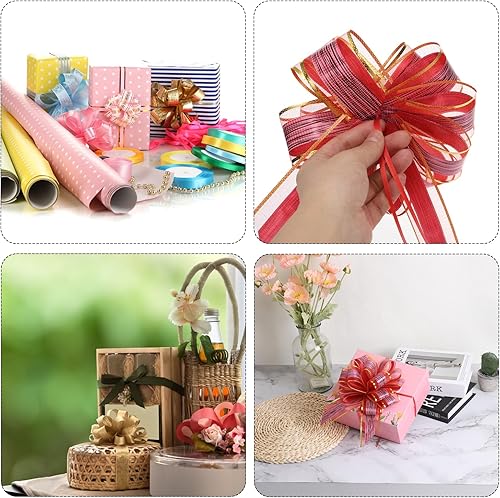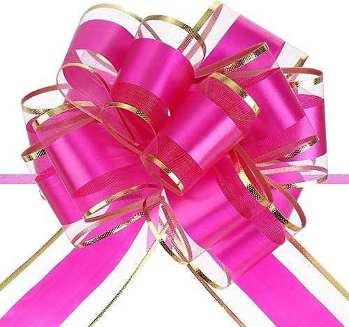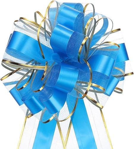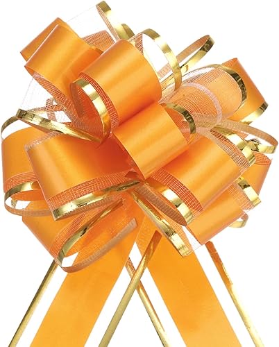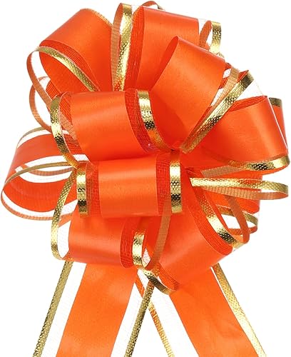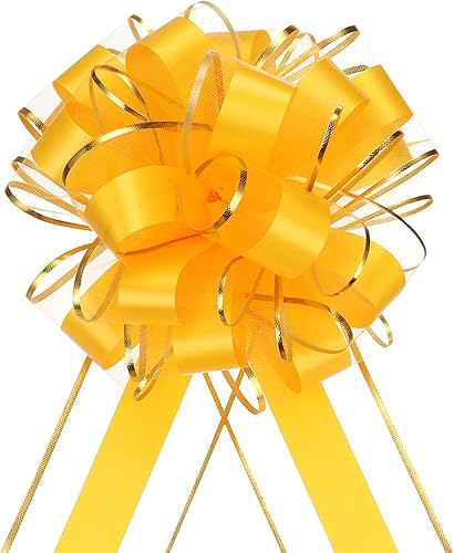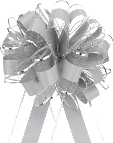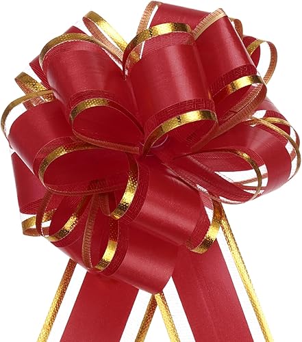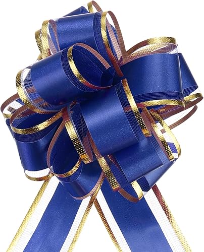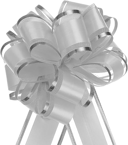 QUARKZMAN Noeud Cadeau 10Pcs 20cm Noeud de Ruban de Noël avec Bordure Dorée, Ruban d'emballage Cadeau en Organza pour Voiture, Nœud pour Paniers de Voiture de Mariage, Nœud, Blanc