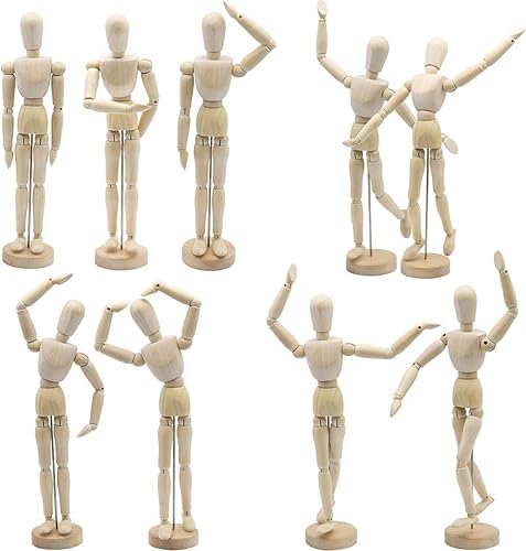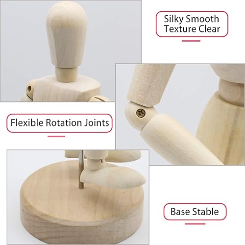 Lot de 2 mannequins en bois avec articulations flexibles - Mannequin d'artiste en bois avec support - Aide parfaite à la peinture et au dessin - Modèle de dessin pour artiste, dessin sur corps