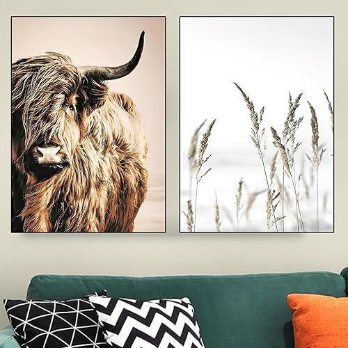 VTRXEG Highlands Vache scandinave sur toile, motif vache des Highlands, moderne, décoration murale, sans cadre (A, 2x50x70cm)