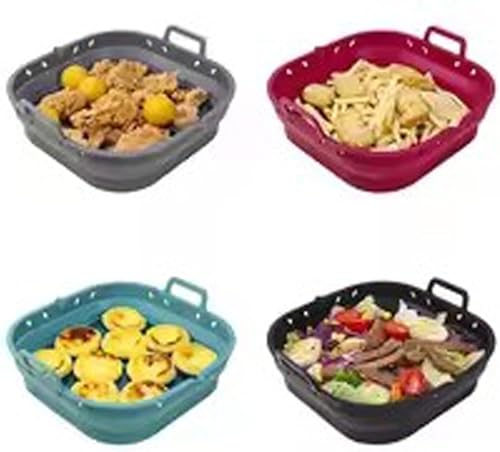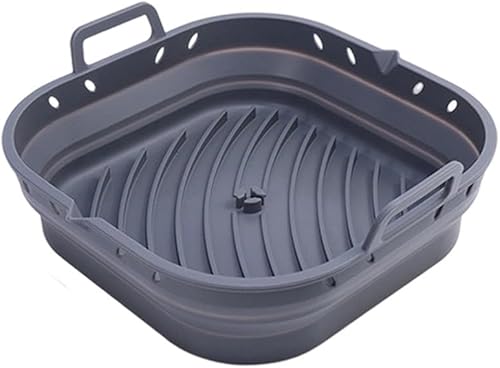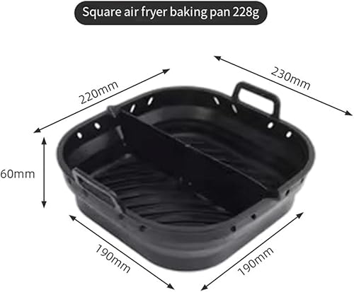 Plateau de cuisson en silicone peu encombrant avec bec verseur d'huile pour friteuse à air, pliable pour un rangement facile, 23 x 22 x 6 cm (carré pliable noir)
