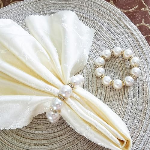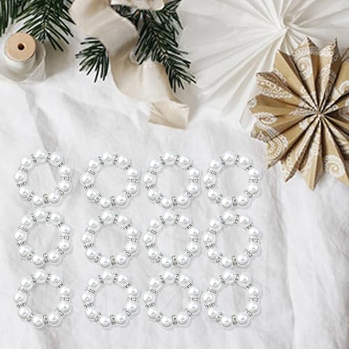 Hevysuo 12 Pièces Anneaux de Serviette en Perles,Rond de Serviette de Table pour Mariage,Fête,Dîner,Anniversaire,Décoration de Table Couleur Argent,1,9 x 0,3 Pouces