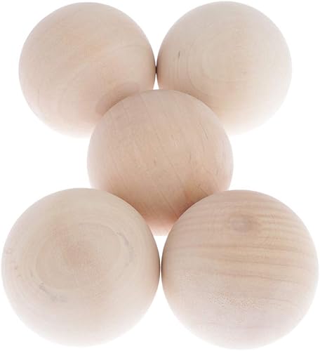 Lot de 5 boules en bois de hêtre naturel massif pour travaux manuels, 60 mm