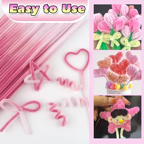 TOAOB - Lot de 100 cure-pipes en chenille - Dégradé de couleur rose - 30 cm de long et 6 mm de large - Pour travaux manuels et décoration - Bricolage