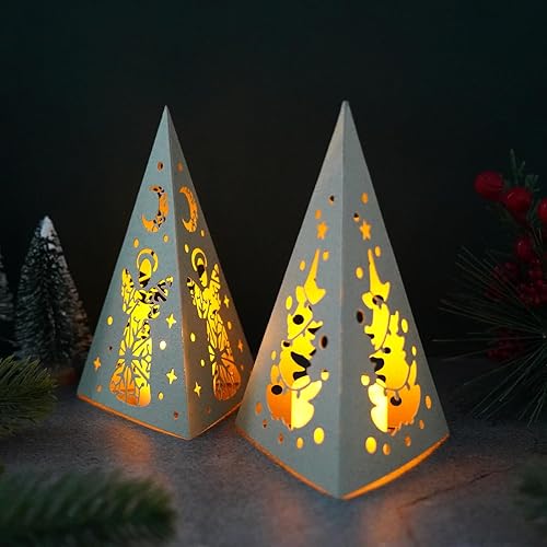 2pcs Noël Matrices de Découpe Scrapbooking Triangle Dies Cutting Photophore forme Ange Arbre de Noël Pochoirs Bricolage Album en Métal Décoration pour Artisanat Fête Noël Anniversaire
