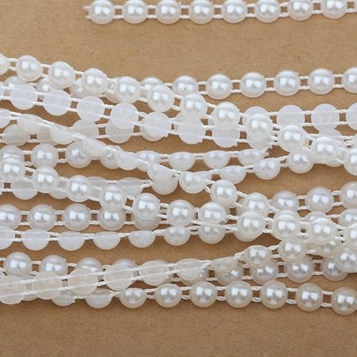 Tiuimk Chaîne de perles en coton demi-rondes de 6 mm - Blanc - 5 m