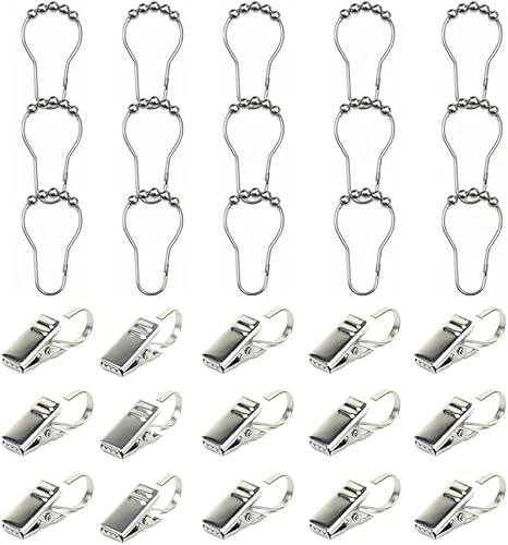 WYAN 30 Packs de Crochets pour Rideaux de Douche avec Rouleaux à Glissement Facile et Petits Crochets pour Rideaux de Douche pour la décoration intérieure, (Argent)