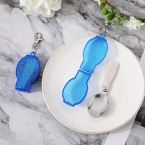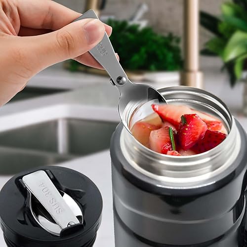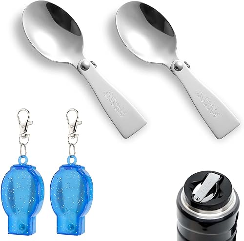 2pcs Cuillère Pliante pour Thermos Funtainer Pot Alimentaire 10oz, Cuillère Pliable Remplacement avec Boîte Métal Compatible avec Thermos pour le Camping en Plein Air Pique Nique
