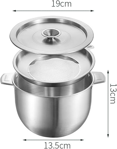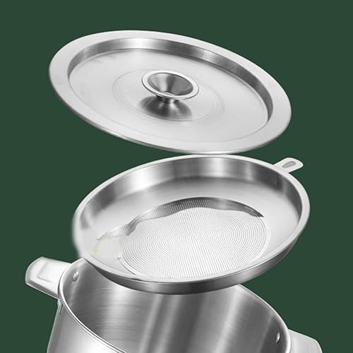 Filtre à huile en acier inoxydable avec couvercle, filtre à huile de saindoux, pour huile de cuisson, huile de friture (5,2 L)