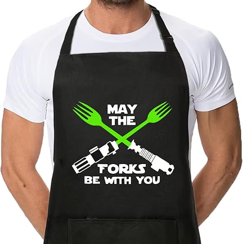 Sugeru® Tablier de cuisine, motif Star Wars, avec 2 poches, pour homme et femme, imperméable, pour la cuisine, la pâtisserie, les barbecues, pour la maison, le restaurant, réglable