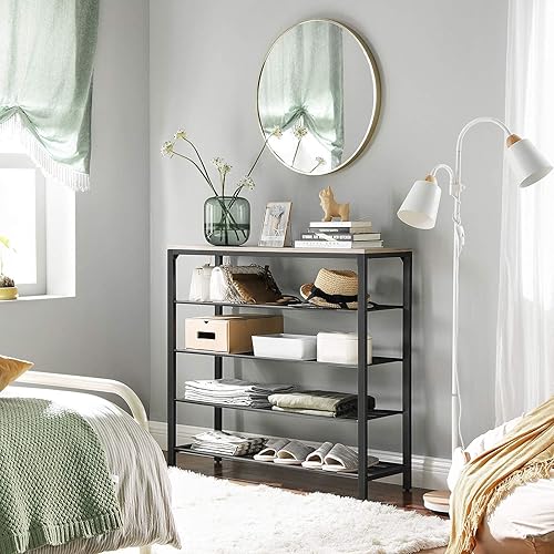 VASAGLE Étagère à Chaussures, Meuble à Chaussures à 4 Niveaux et Grande Surface pour Sac, 100 x 30 x 92.5 cm, pour entrée, Couloir, Cadre en métal, Style Industrie, Grège et Noir LBS015B02