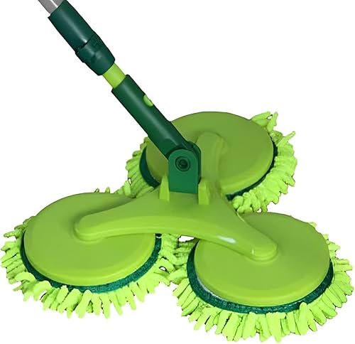 cozydiscount Balai Microfibres 3 Têtes Rotatives - Housses Amovibles - Manche Télescopique et Flexible