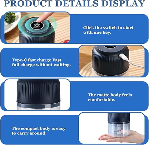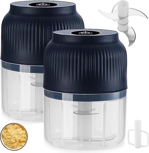 Lot de 2 hachoirs à oignons, 300 ml, multihachoir à oignons, avec fouet remplaçable, USB électrique, accessoires de cuisine pour oignons, légumes, fruits, noix