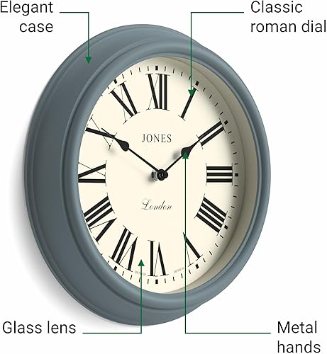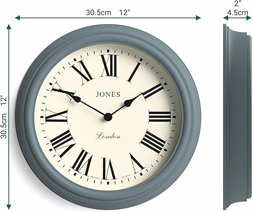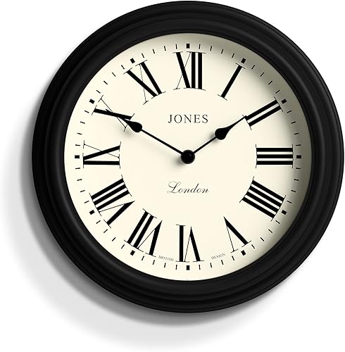 JONES CLOCKS® Vénitienne Horloge Murale | Horloge Ronde Classique | 30 cm | Noir | Chiffres Romains | Design Traditionnel idéal pour la Cuisine, Le Salon ou la Chambre à Coucher