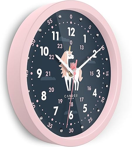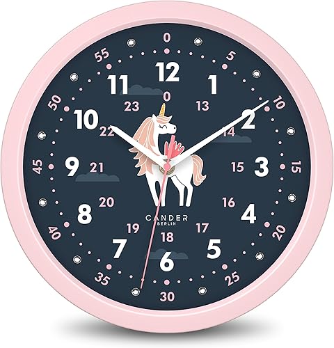 Cander Berlin MNU 1230 M Horloge murale silencieuse pour enfant Motif licorne 30,5 cm Sans bruit de tic-tac